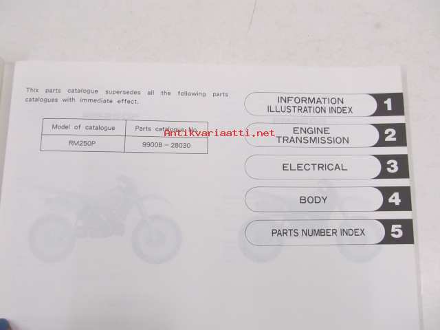 Suzuki RM250, RM250P, RM250R parts catalogue - varaosaluettelo