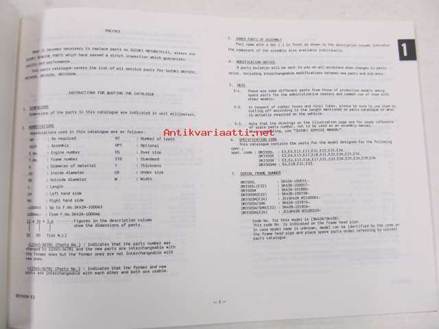 Suzuki DR350S (SK42A/SK42B) DR350SL, DR350SM, DR350SN, DR350SHN parts catalogue - varaosaluettelo