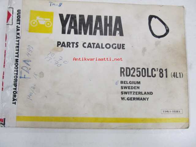Yamaha RD250LC'81 (4L1) Belgium, Sweden, Switzerland, W.Germany parts catalogue - varaosaluettelo