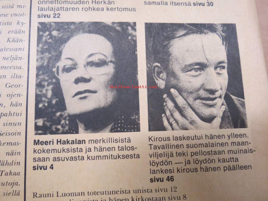 | Saatavilla | 0 kpl (Huom. tuote on myyty! / Sold out!) | | Kunto | K2 | | Sidonta/painoasu | Lehti | | Kielet | Suomi |