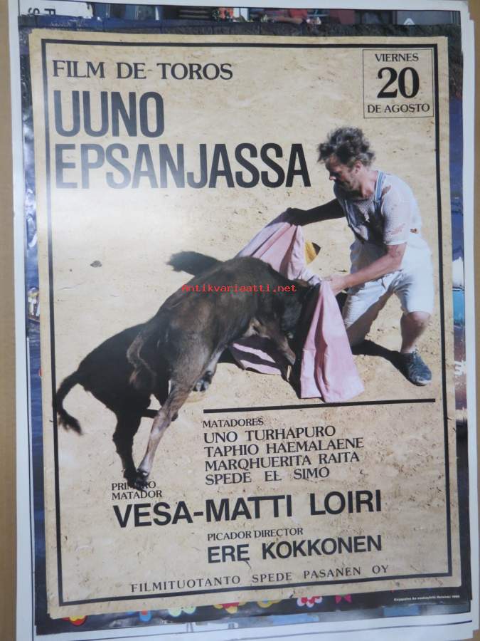 Filmituotanto Spede Pasanen Oy, 198544 x 60 cm alkuperäinen elokuvajuliste, varastossa ollut, mutta voi olla varastoinnista tuleita naarmuja / taittumia yms. pientä.