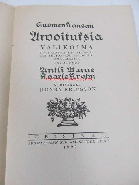 Aarne Antti, Krohn Kaarle, Suomalaisen Kirjallisuuden Seura (osa 168), 1922