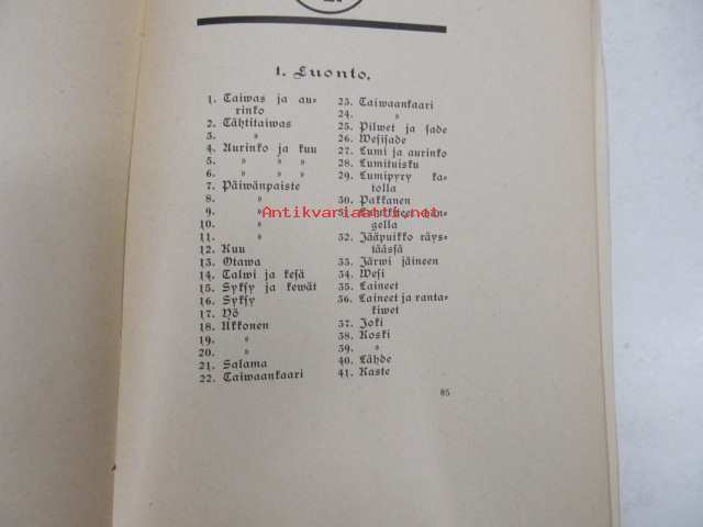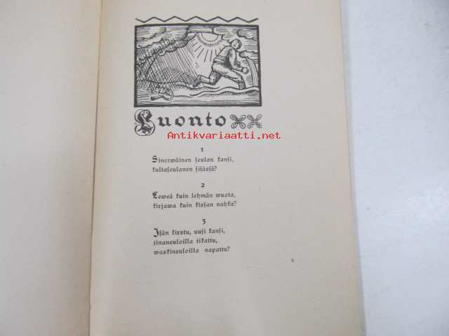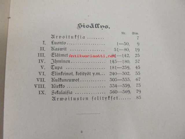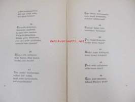 | Saatavilla | 1 kpl | | Julkaisuvuosi | 1922 | | Sivuja | 92 | | Painos | 1. | | Kunto | K3 | | Sidonta/painoasu | Nidottu (pehmeäk.) | | Kielet | Suomi |
