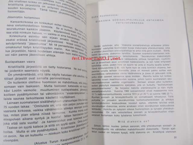 | Saatavilla | 1 kpl | | Julkaisuvuosi | 1980 | | Sivuja | 81 | | Painos | 1. | | Kunto | K3 | | Sidonta/painoasu | Nidottu (pehmeäk.) | | ISBN | 951-99259-6-1 | | Kielet | Suomi |