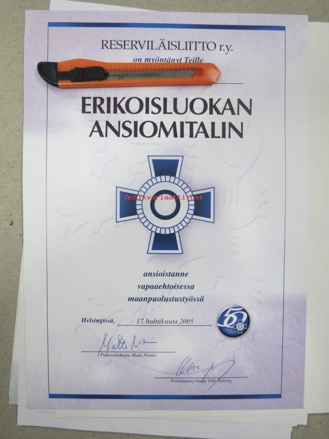 Reserviläisliitto ry, erikoisluokan ansiomitali -myöntökirja