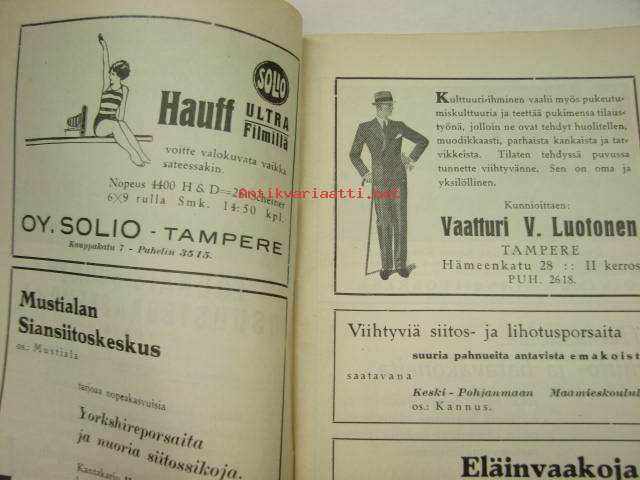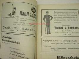 | Saatavilla | 1 kpl | | Julkaisuvuosi | 1935 | | Sivuja | 53 + ilmoitussivut | | Kunto | K3 | | Sidonta/painoasu | Nidottu (pehmeäk.) | | Kielet | Suomi |