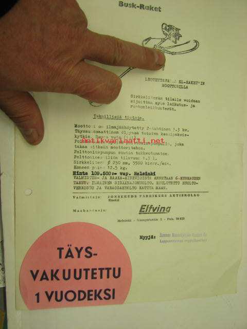 Jonsereds Busk-Raket raivaussaha -myyntiesite