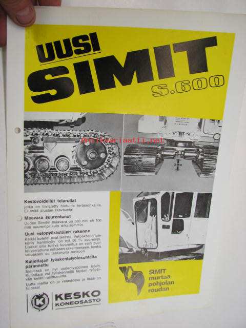 Simit S.600 tela-alustainen kaivinkone -myyntiesite