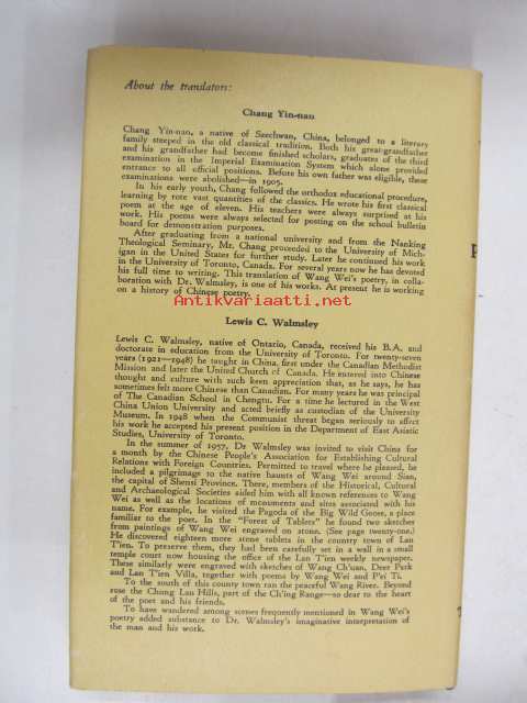| Saatavilla | 1 kpl | | Julkaisuvuosi | 1959 | | Sivuja | 159 | | Painos | 3. | | Kunto | K3 | | Sidonta/painoasu | Sidottu (kansipaperit) | | Kielet | Englanti |