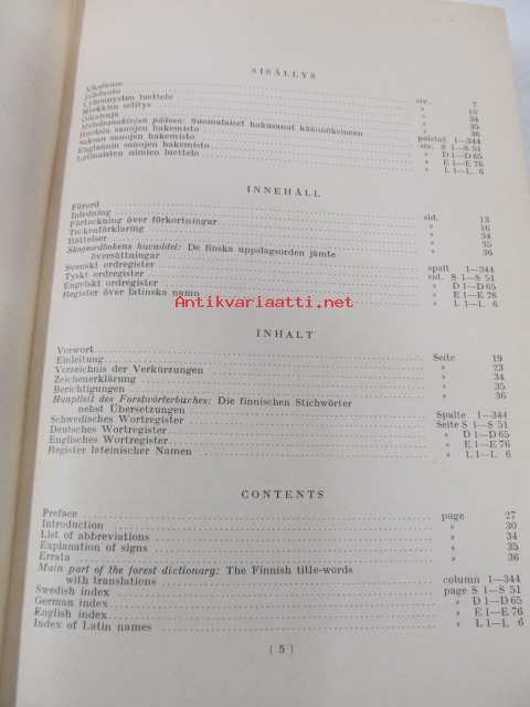 Metsäsanakirja suomi-ruotsi-saksa-englanti / Skogsordbok / Forstwörterbuch / Forest dictionary