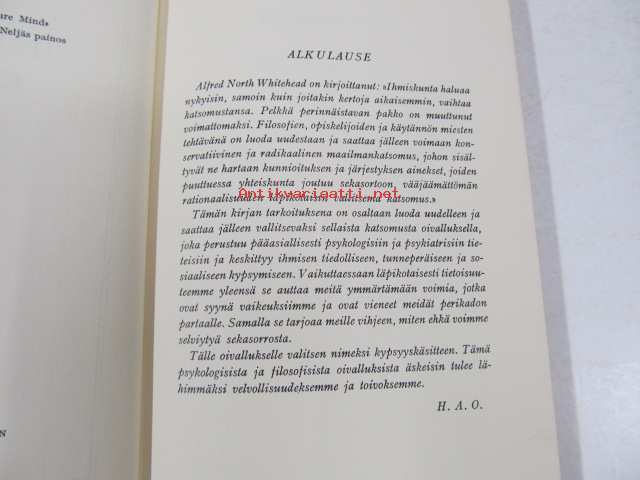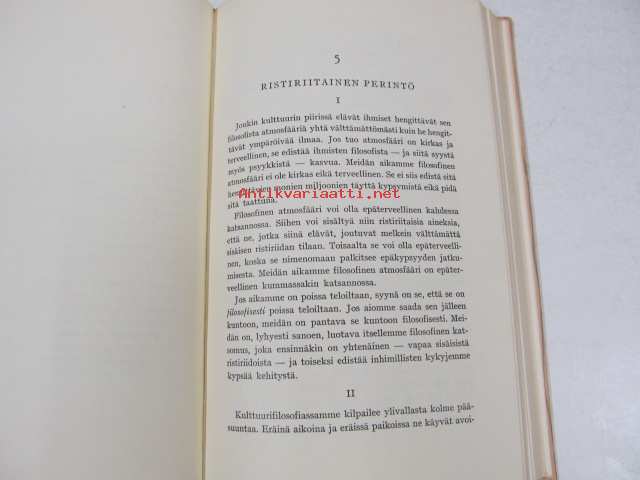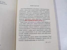 | Saatavilla | 1 kpl | | Julkaisuvuosi | 1958 | | Sivuja | 269 | | Painos | 4. | | Kunto | K3 | | Sidonta/painoasu | Sidottu (kovak.) | | Kielet | Suomi |