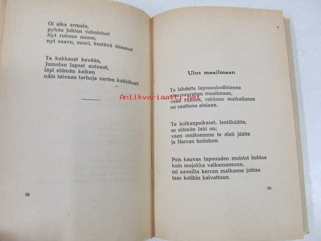 | Saatavilla | 1 kpl | | Julkaisuvuosi | 1922 | | Sivuja | 160 | | Painos | 1. | | Kunto | K3 | | Sidonta/painoasu | Nidottu (pehmeäk.) | | Kielet | Suomi |