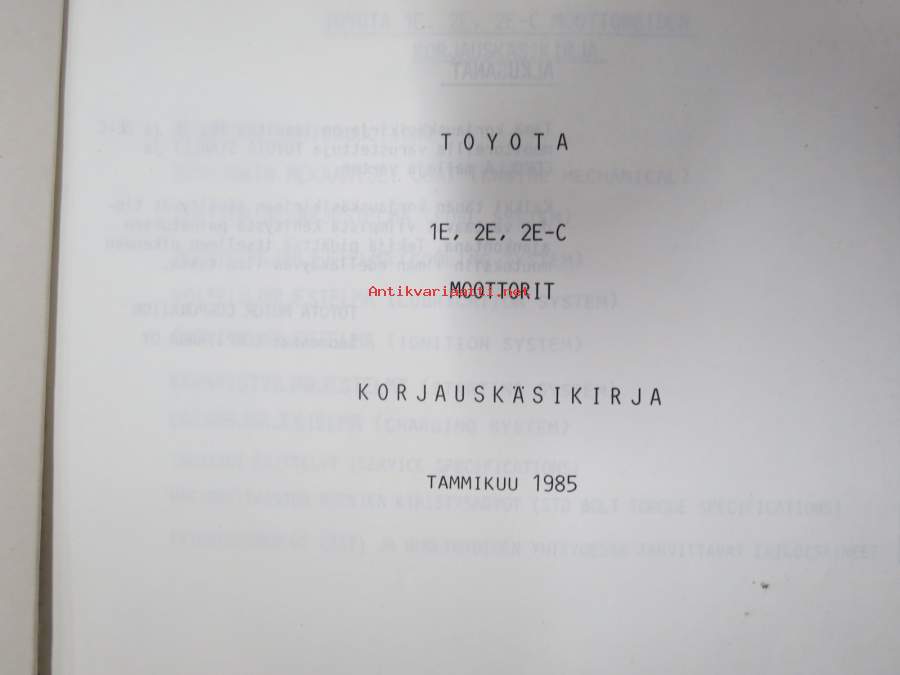 Toyota 1E, 2E, 2E-C moottorit korjauskäsikirja -tehtaan / maahantuojan alkuperäinen suomenkielinen korjaamokirja