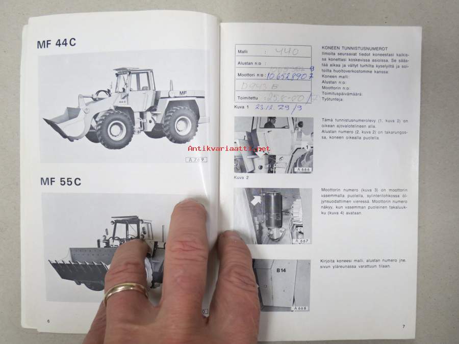 Massey-Ferguson MF 44C, 55C pyöräkuormaaja käyttö ja huolto / käyttöohjekirja -operator´s manual in finnish