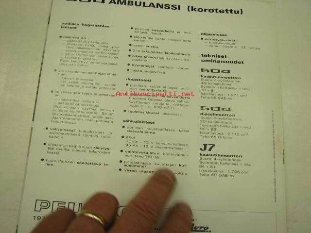 Peugeot 504, J7 ambulanssit 1975 -myyntiesite