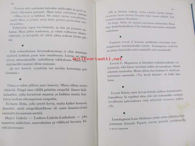 | Saatavilla | 1 kpl | | Julkaisuvuosi | 1966 | | Sivuja | 96 | | Painos | 1. | | Kunto | K3 | | Sidonta/painoasu | Sidottu (kovak.) |