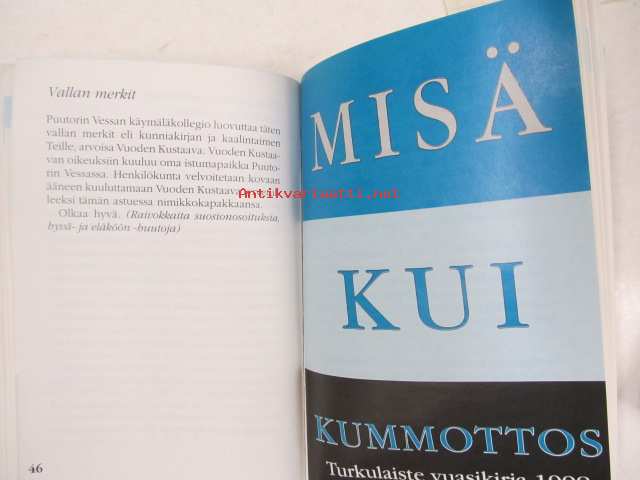 | Saatavilla | 1 kpl | | Julkaisuvuosi | 1998 | | Sivuja | 95 | | Painos | 1. | | Kunto | K3 | | Sidonta/painoasu | Nidottu (pehmeäk.) | | ISBN | 951-97572-2-8 | | Kielet | Suomi |