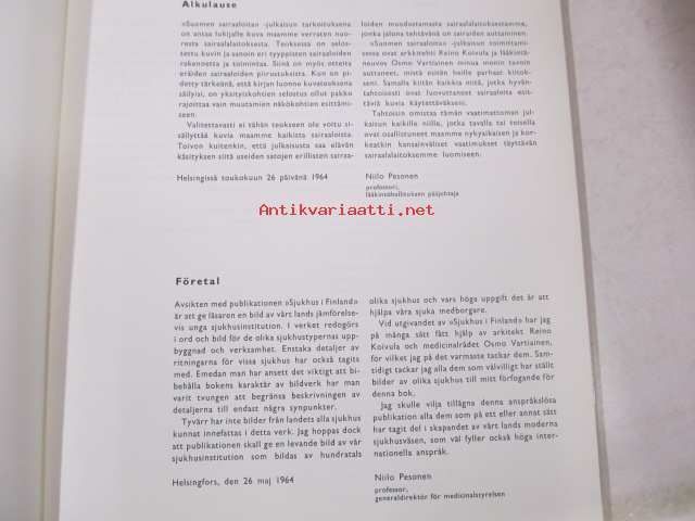 Saatavilla 1 kpl Julkaisuvuosi 1964 Painos 1 Kunto K3 Sidonta/painoasu Sidottu (kansipaperit) Kielet Suomi, Ruotsi, Englanti
