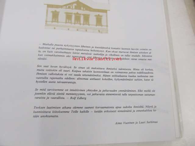 Saatavilla 1 kpl Julkaisuvuosi 1974 Sivuja 208 Painos 1 Kunto K3 Sidonta/painoasu Sidottu (kansipaperit) ISBN 951-99034-2-9 Kielet Suomi