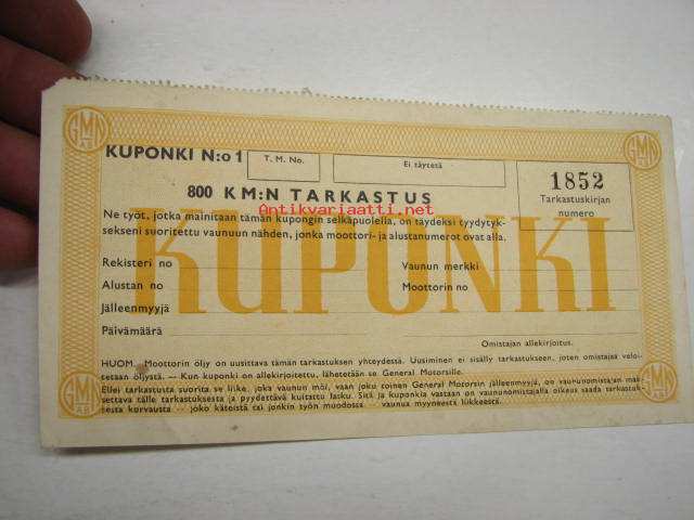 General Motors / 800 km tarkastuskuponki