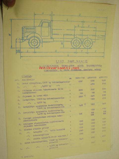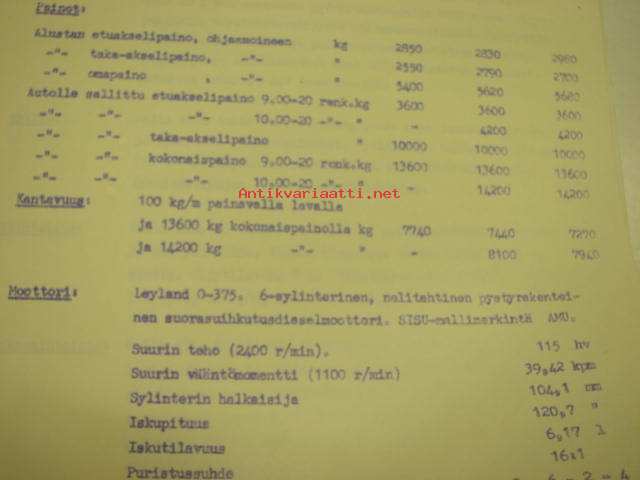 Sisu K-44SU (4x4+2) nelipyörävetoinen kuorma-auton alusta teliakselistolla - etuakselisto ja telin etummainen akselisto vetävä / tekniset tiedot -tehtaan
