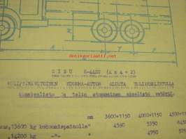 Sisu K-44SU (4x4+2) nelipyörävetoinen kuorma-auton alusta teliakselistolla - etuakselisto ja telin etummainen akselisto vetävä / tekniset tiedot -tehtaan alkuperäinen monistettu esite