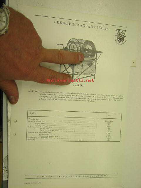 Wärtsilä Peko perunanlajittelija malli PPL -myyntiesite
