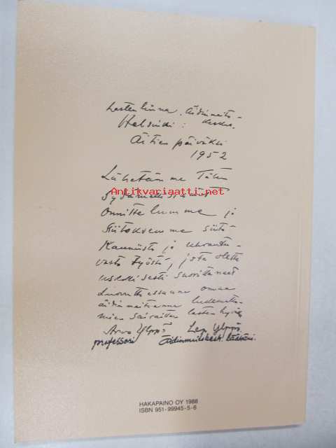 Saatavilla 1 kpl Julkaisuvuosi 1988 Sivuja 136 Painos 1. Kunto K3 Sidonta/painoasu Nidottu (pehmeäk.) ISBN 951-99945-5-6 Kielet Suomi