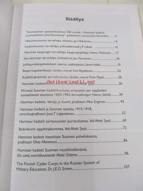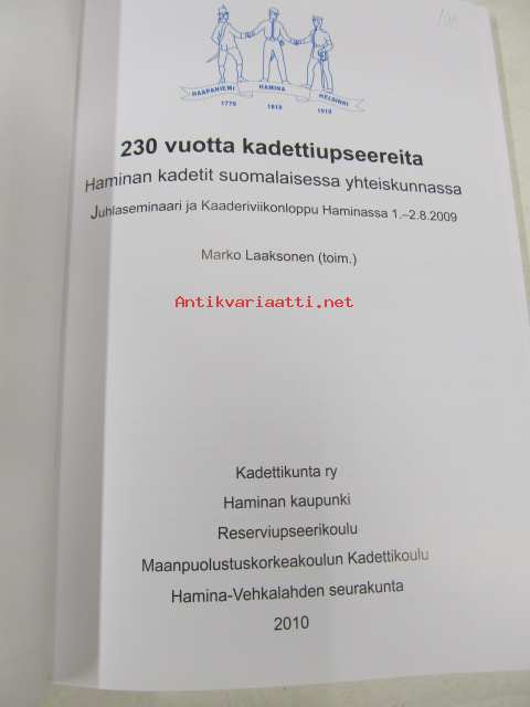 230 vuotta kadettiupseereita - Haminan kadetit suomalaisessa yhteiskunnassa. Juhlaseminaari ja Kaaderiviikonloppu Haminassa 1.-2.8.2009