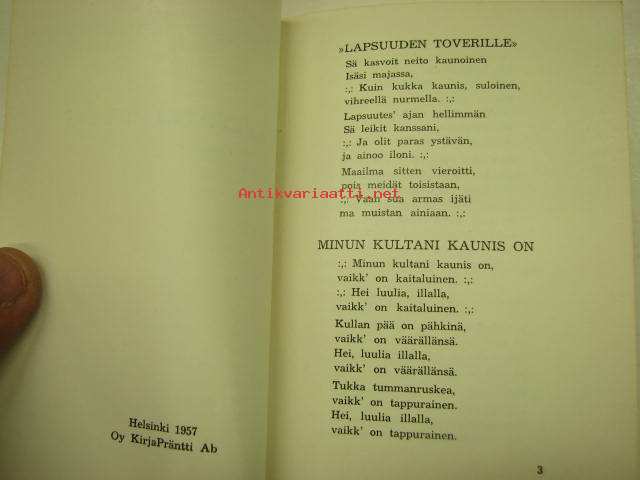 Saatavilla 1 kpl Julkaisuvuosi 1957 Sivuja 75 Painos 3. Kunto K3 Sidonta/painoasu Nidottu (pehmeäk.) Kielet Suomi