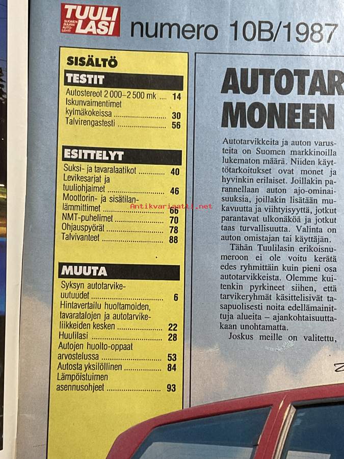 Tuulilasi 1987 nr 10 B Auton varustelun erikoisnumero