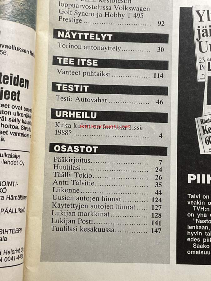 Tuulilasi 1988 nr 5, koeajo BMW 520i ja Volkswagen Passat GL 1.8, käytetty Toyota Hiace