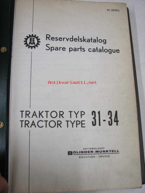 Bolinder-Munktell Dieseltraktor typ 31/34 Reservdelskatalog -varaosaluettelo