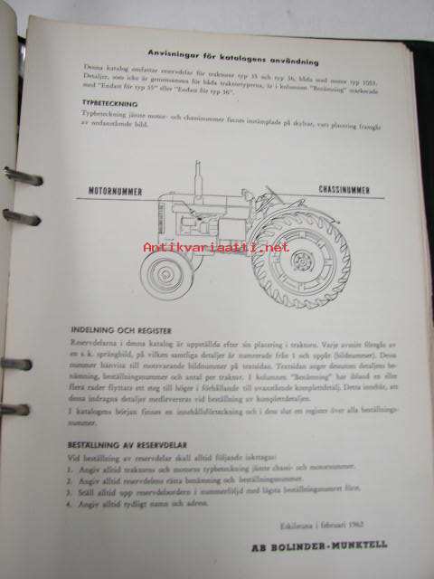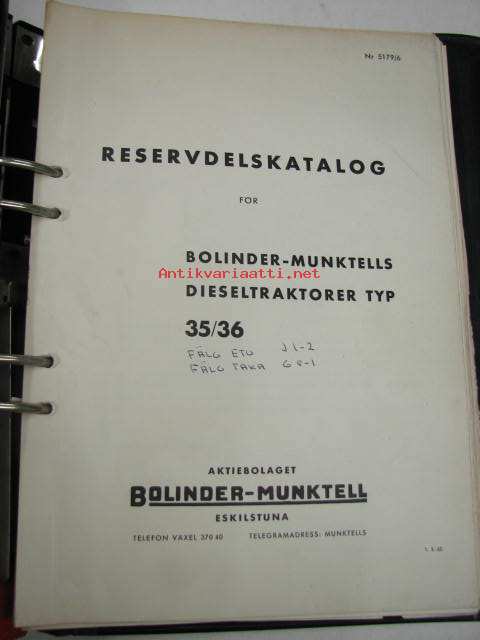 Bolinder-Munktell Dieseltraktor typ 35/36 Reservdelskatalog (Motor) -varaosaluettelo (Moottori)
