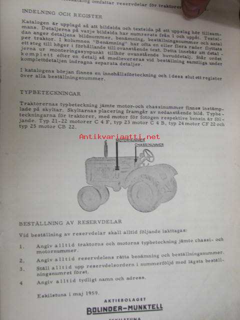 Bolinder-Munktell traktor typ 21-25 - 31-34 Reservdelskatalog -varaosaluettelo
