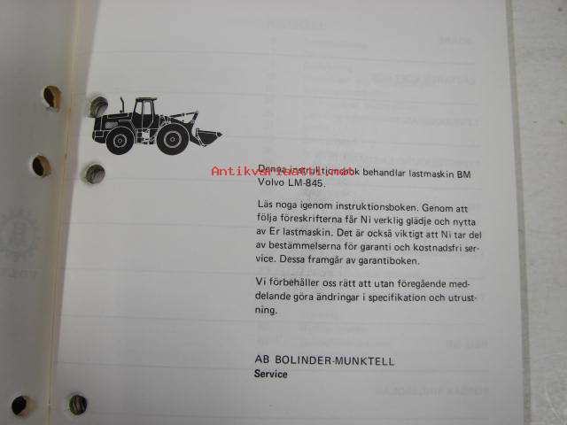 BM Volvo LM 845 Instruktionsbok -käyttöohjekirja ruotsiksi