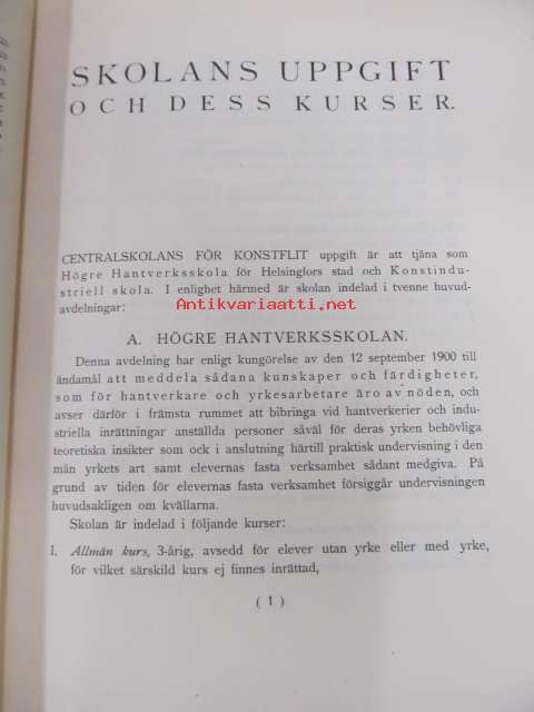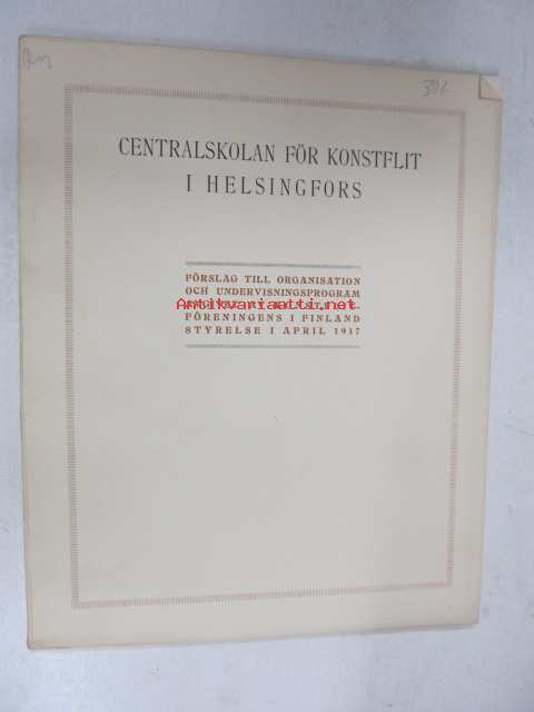 Centralskolan för konstflit i Helsingfors : Förslag till organisation och undervisningsprogram 1917