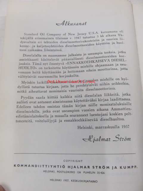 Ström Hjalmar, Ky Hjalmar Ström & kump., 1957 Dieselmoottoreiden toimintaperiaatteet ja niiden huolto.