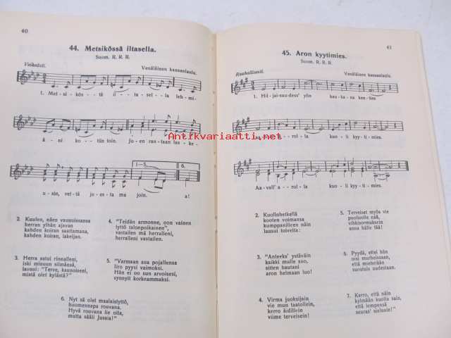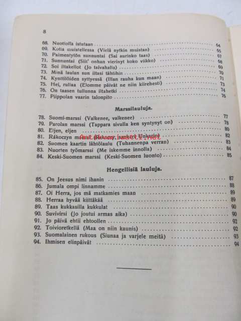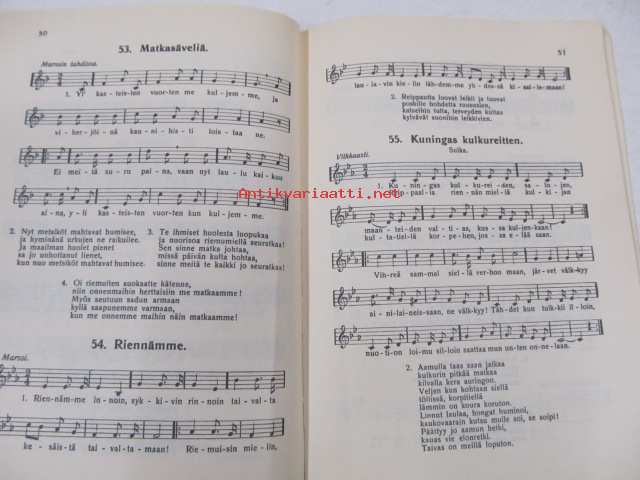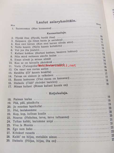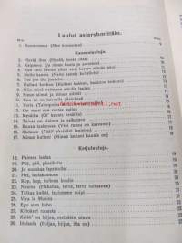 Lauluja - 1928, perinteinen musta vahakantinen vihko, johon kirjoitettu laulujen sanoja