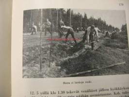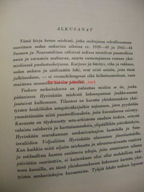 Kirja kertoo miehistä etulinjassa vv 1939 ja 1941-44. Joitakin m/v valokuvia.