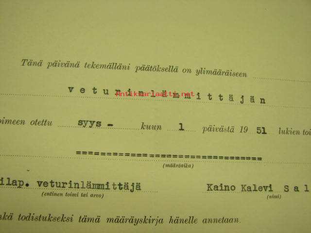 Valtionrautatiet, VR, Veturinlämmittäjän määräyskirja, Kaino Salminen, 1951