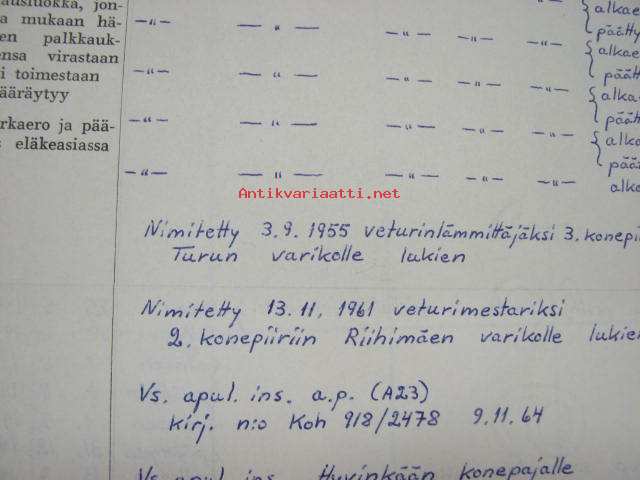Valtionrautatiet, VR, vs. ylim. apulaisinsinööri Nimikirjanote ym. Kaino Salminen