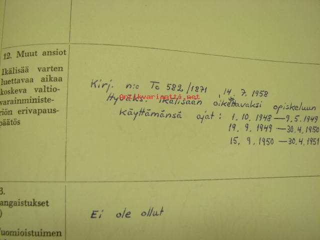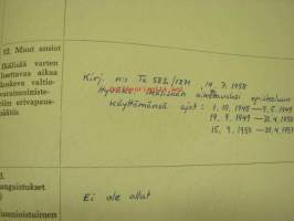 Oleskelulupa takaisinvallatulla alueella, Johanneksen kunnan Kaijalan kylästä, emäntä Maria Hänninen + lapset Heino Olavi - Aino Tellervo - Jouko Tapio, 11.4.1942