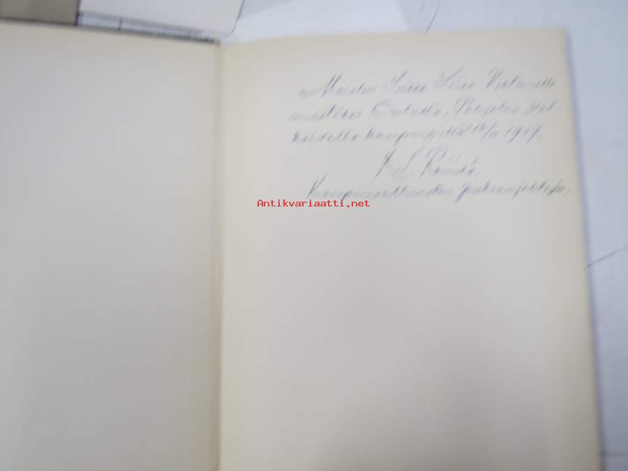 Oulu 1936 -kuvateos, kaupunginvaltuuston puheenjohta K.J. Reinilän omistuskirjoitus maisteri Sirkka-Liisa Virtaselle 12.10.1937