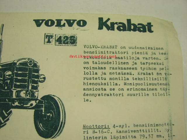 Volvo T425 Krabat traktori -myyntiesite / sales brochure in finnish
