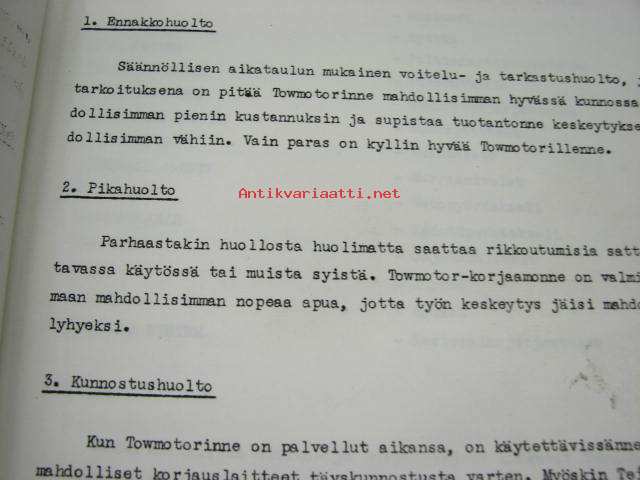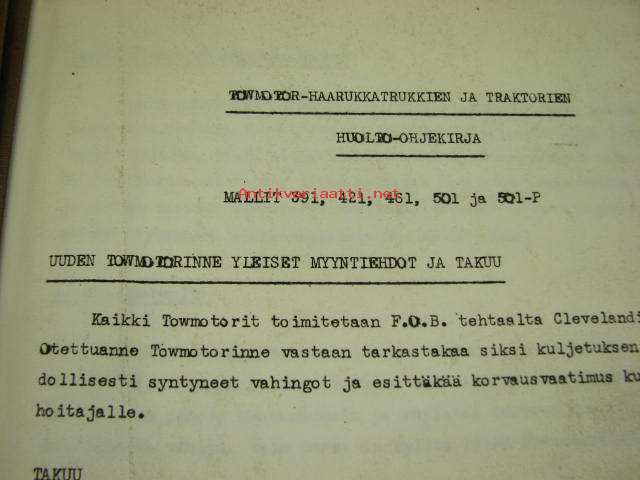 Towmotor 391, 421, 461, 501, 501-P haarukkatrukkien ja traktorien huolto-ohjekirja