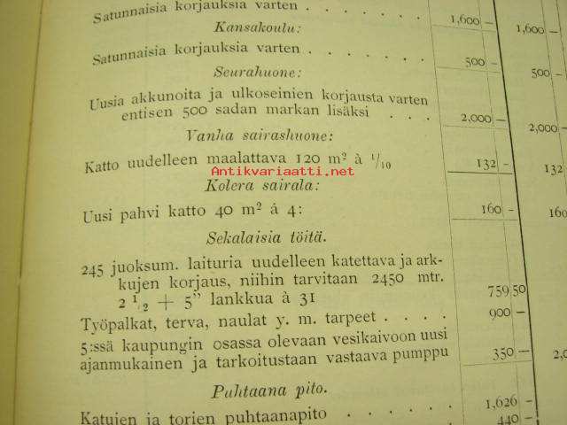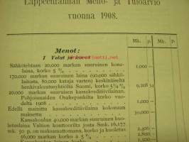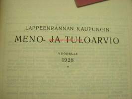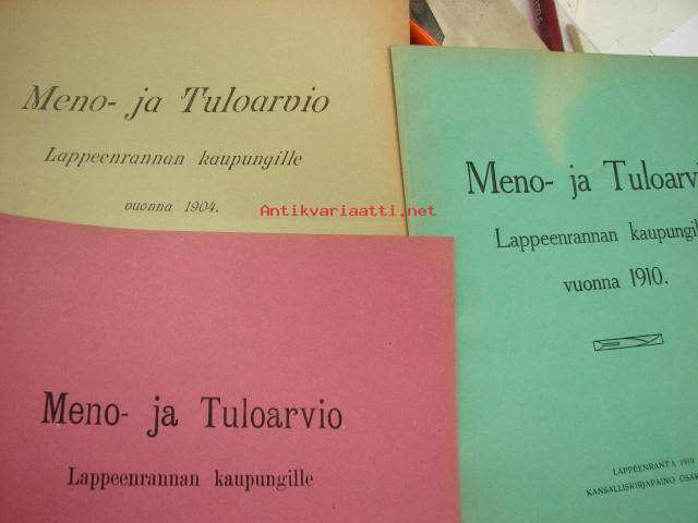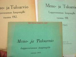 Meno- ja tuloarvio Lappeenrannan kaupunki, erilliset painokset vuuosille 1902, 1904, 1908, 1910, 1911, 1912, 1928