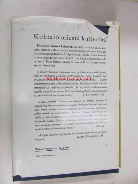 Saatavilla 1 kpl Julkaisuvuosi 1960 Sivuja 360 Painos 2. Kunto K3 kansipaperi K2 Sidonta/painoasu Sidottu (kansipaperit) Kielet Suomi