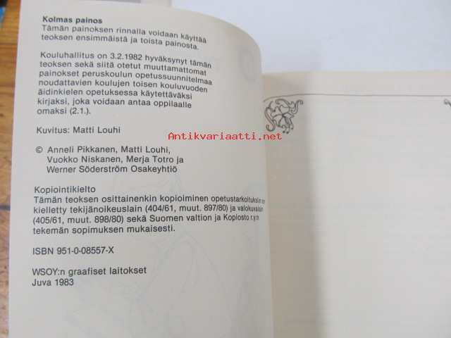 Saatavilla 1 kpl Julkaisuvuosi 1983 Sivuja 88 Painos 3. Kunto K3 Sidonta/painoasu Nidottu (pehmeäk.) ISBN 951-0-08557-X Kielet Suomi