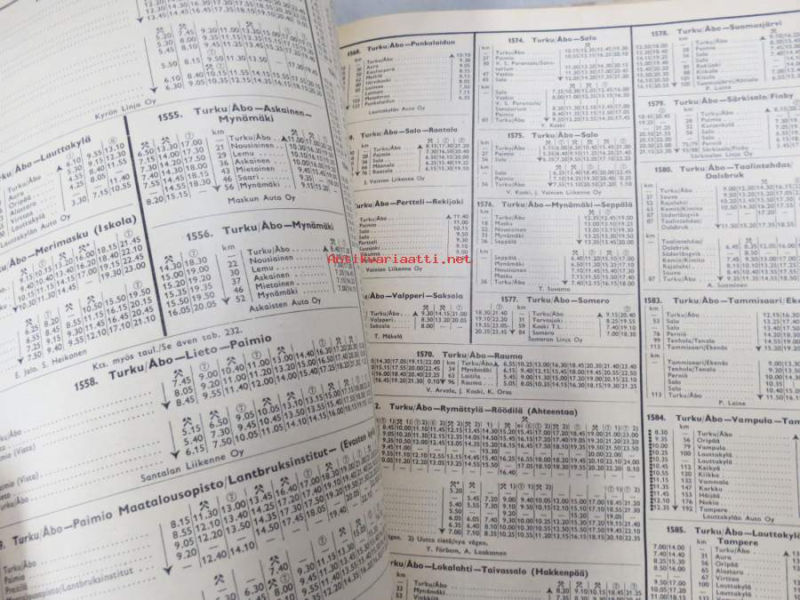 Suomen Matkailijayhdistys / Turistföreningen i Finland, 1959Suomen Kulkuneuvot - Finlands kommunikationer 1958 nr 2 Rautatieaikataulut, laivojen, lentoliikenteen ja linja-autojen kulkuvuoroja sekä kartta / Järnvägstidtabeller, turlistor för båt- och flygtrafiken och bussar samt karta 31.5.1959-30.9.1959, 20 x 24 cm.